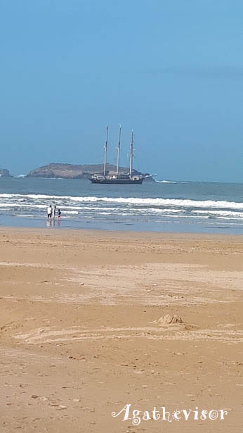 Au loin ce jour là, nous admirons ce trois mats, digne d’un bateau pirate, qui mouille face à la Médina.