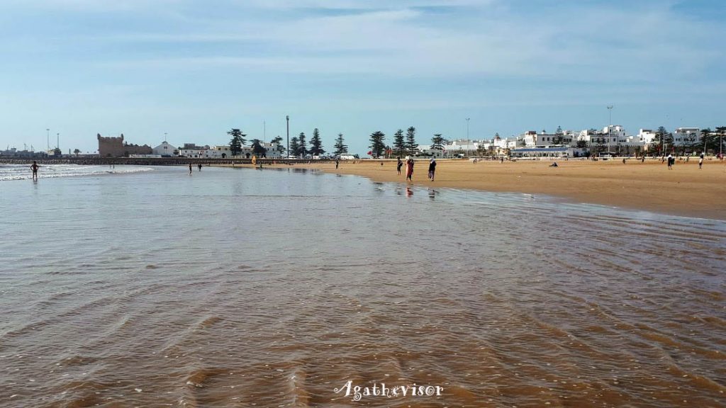 Après une pause bien méritée, nous prenons la direction de l’immense plage magnifique et propre d’Essaouira située au pied de la Médina. Même au tout début novembre, on peut encore tremper ses doigts de pied dans la mer. Des enfants plus téméraires, s’y baignent à demi. Avec les courants ici aussi la baignade est dangereuse. Comme très souvent sur les plages de la côte, on trouve des joueurs de football ou encore des amateurs de cerf-volants. Essaouira est un spot de kitesurf également.