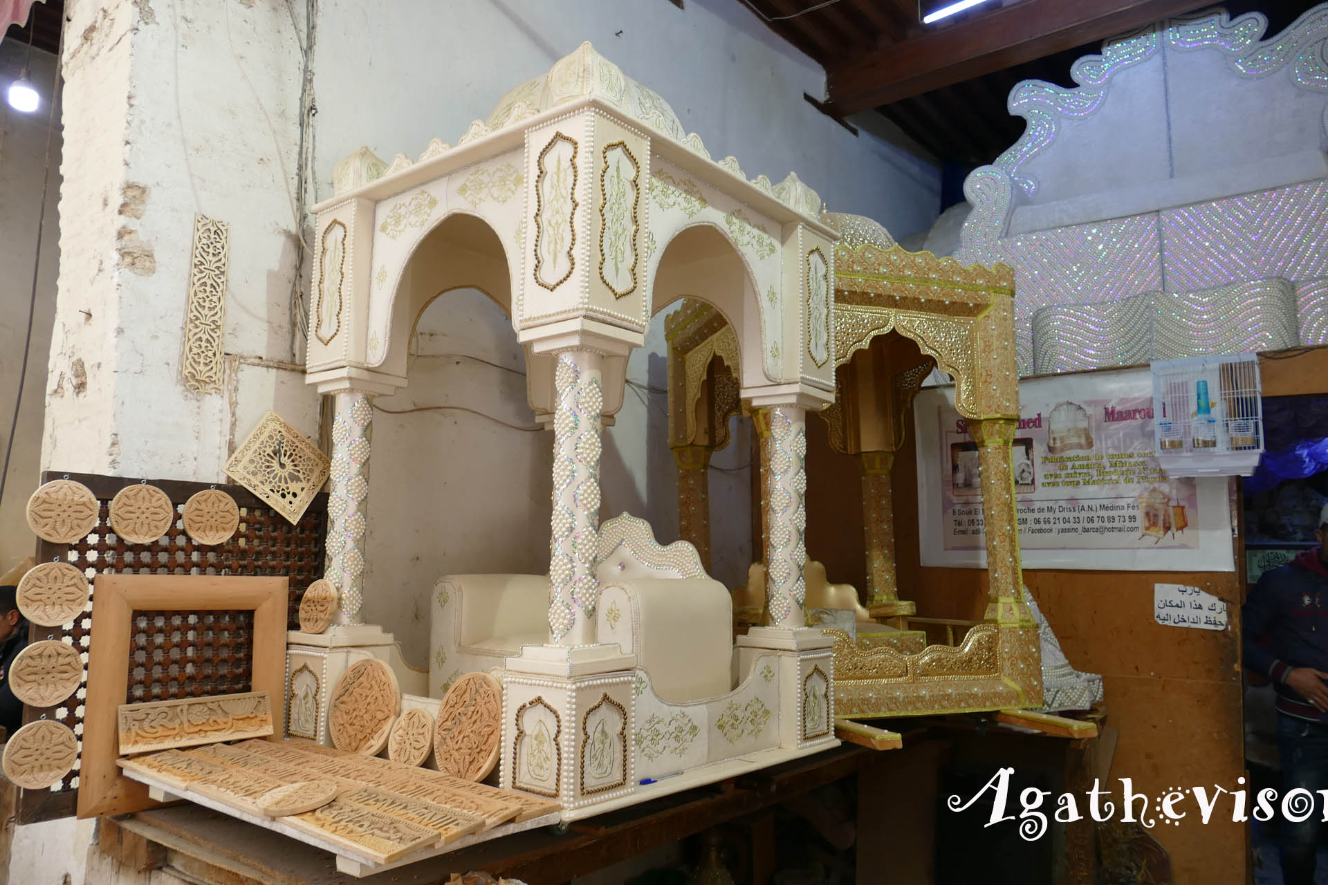 2019FE0295-Fes-Medina-Chaises et colonades sculptes